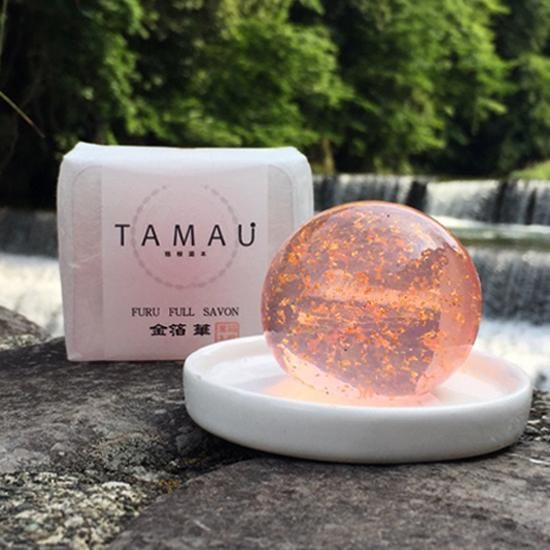 可愛らしいピンクのふるふる石鹸に金箔を散りばめました。
